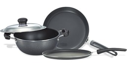 The Prestige Omega Deluxe Granite Aluminium 3-Piece Set includes a Tawa, Fry Pan, and Kadai with a Glass Lid. Crafted with advanced German technology, this cookware boasts a 5-layered non-stick coating that ensures exceptional durability, outlasting ordinary cookware. It is free from harmful chemicals, promotes healthier cooking practices, and is suitable for both gas and induction cooktops. The sleek black powder-coated aluminium outer body not only enhances aesthetics but also simplifies cleaning. Take advantage of the Great Indian Sale on Amazon in 2023 to bring this cooking set to your home.